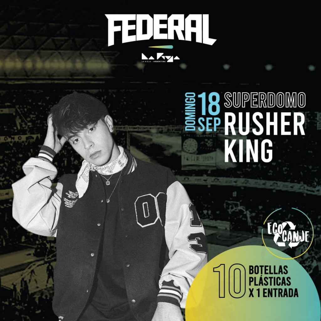 En el marco de la primera edición de la “Federal ESports Cup” (FEC) que se llevará a cabo desde el 16 y hasta el 18 de septiembre próximo en el Superdomo y que contará con el espectacular cierre del trapero argentino más reconocido del momento Rusherking. El Gobierno de la Provincia, reafirmando su compromiso de llevar adelante eventos sostenibles, dispuso la modalidad de ecocanje para la adquisición de entradas para el recital de Thomás Nicolás Tobar, conocido artísticamente como «Rusherking».