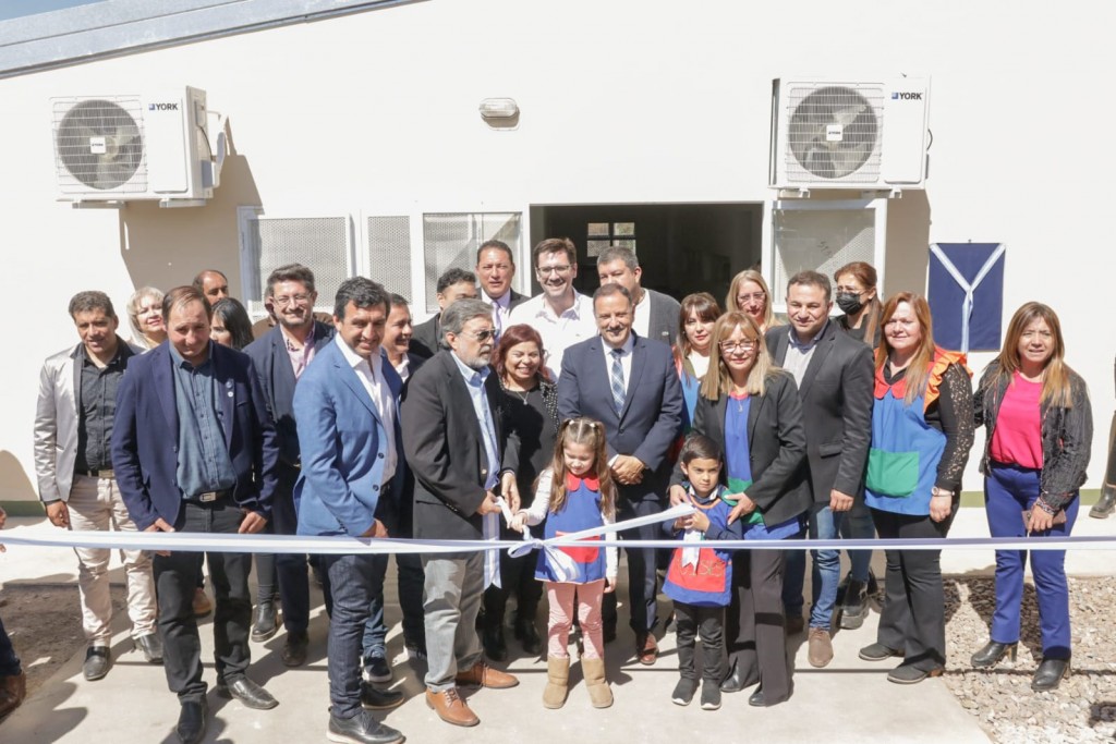 El mandatario participó del acto inaugural del nuevo edificio escolar del Nivel Inicial ubicado en el barrio Los Olivares de Olta, donde realizó el corte de cintas, un descubrimiento de placa y un recorrido por la flamante institución que albergará a las y los más pequeños de la zona.