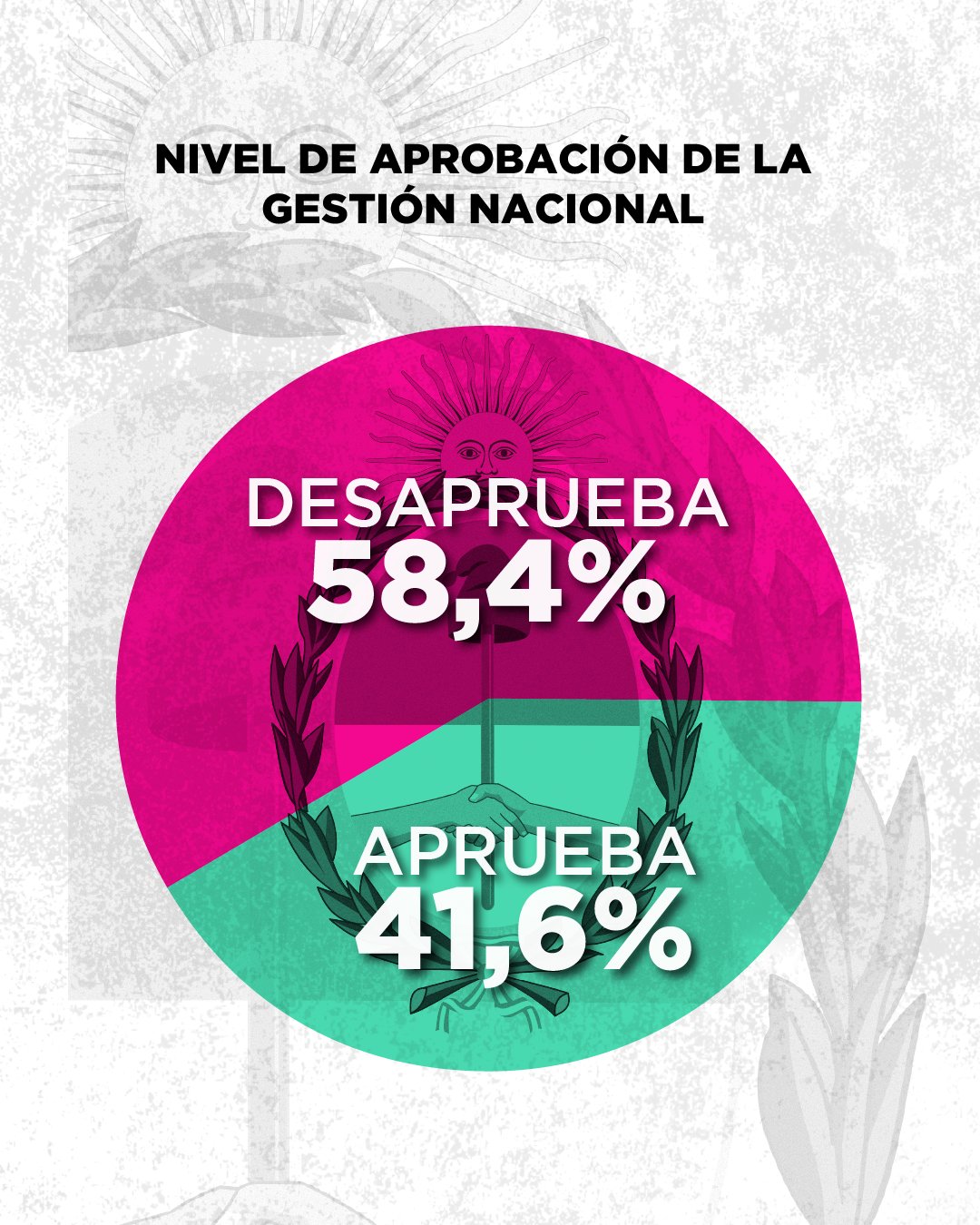 El último trabajo de la consultora Synopsis, recolectados durante la segunda semana de marzo, concluyó que la imagen positiva del gobierno nacional bajó cuatro puntos hasta ubicarse en el 41,6,3% de respuestas positivas contra un mayoritario 58,4% de rechazos, en niveles similares a los que mostraba en octubre pasado y revirtiendo la recuperación de fin de 2024.
