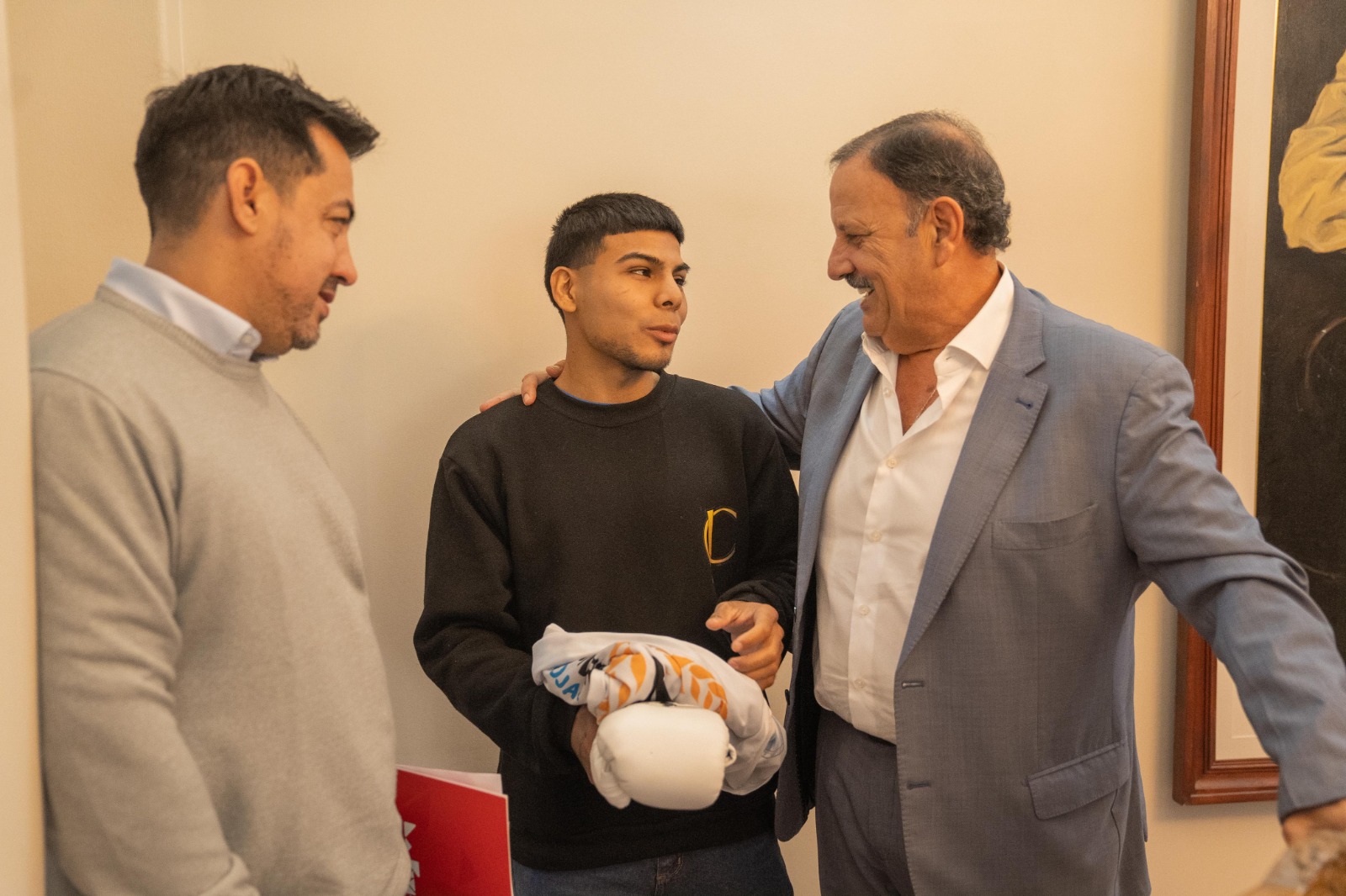 El gobernador Ricardo Quintela recibió este martes, en la Residencia Oficial, al boxeador riojano Agustín “Chiquitín” Contreras, flamante campeón sudamericano de la categoría mosca, tras imponerse en su debut internacional en Puerto Madero, Buenos Aires.