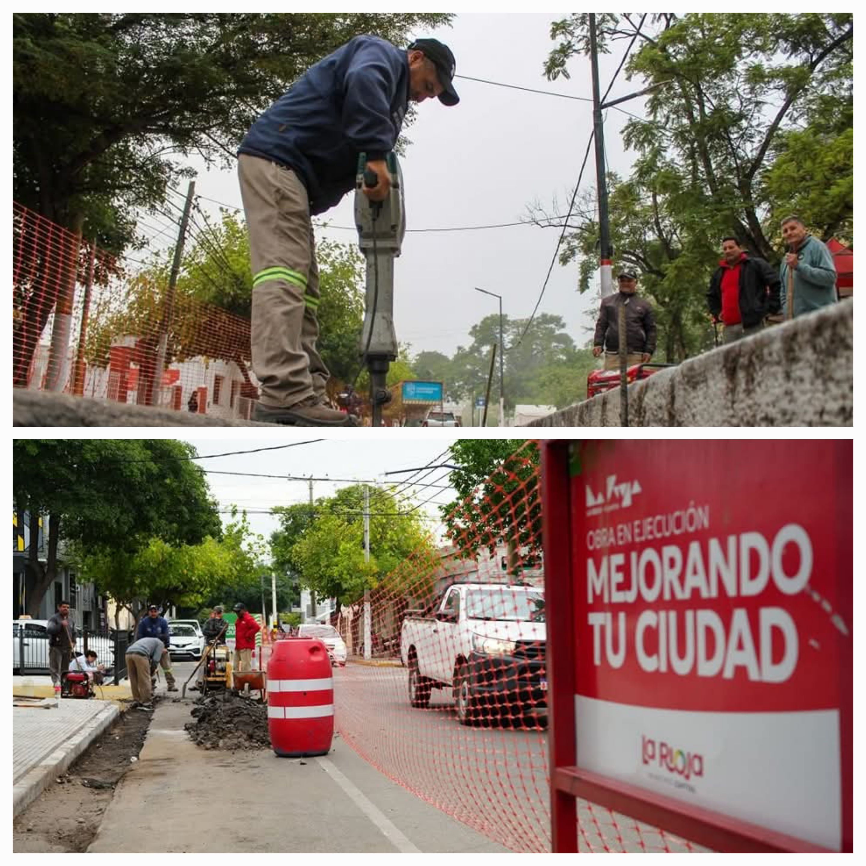 En ese marco, comenzaron los trabajos en el microcentro, para la reconstrucción de cunetas sobre la calle Jaramillo, entre Pelagio B. Luna y San Nicolás de Bari, a la altura de la plaza Facundo Quiroga.