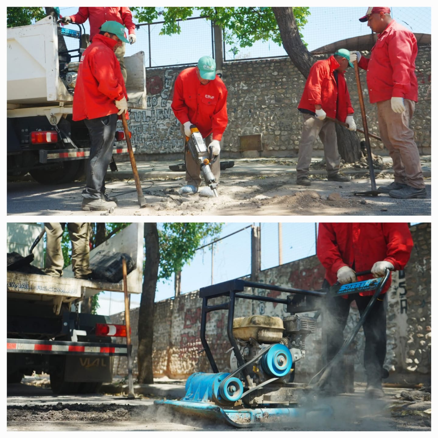 El equipo de conservación vial del CEPAR Este realizó tareas de bacheo en la arteria Tama reforzando la seguridad vial en el barrio Joaquín Victor González.