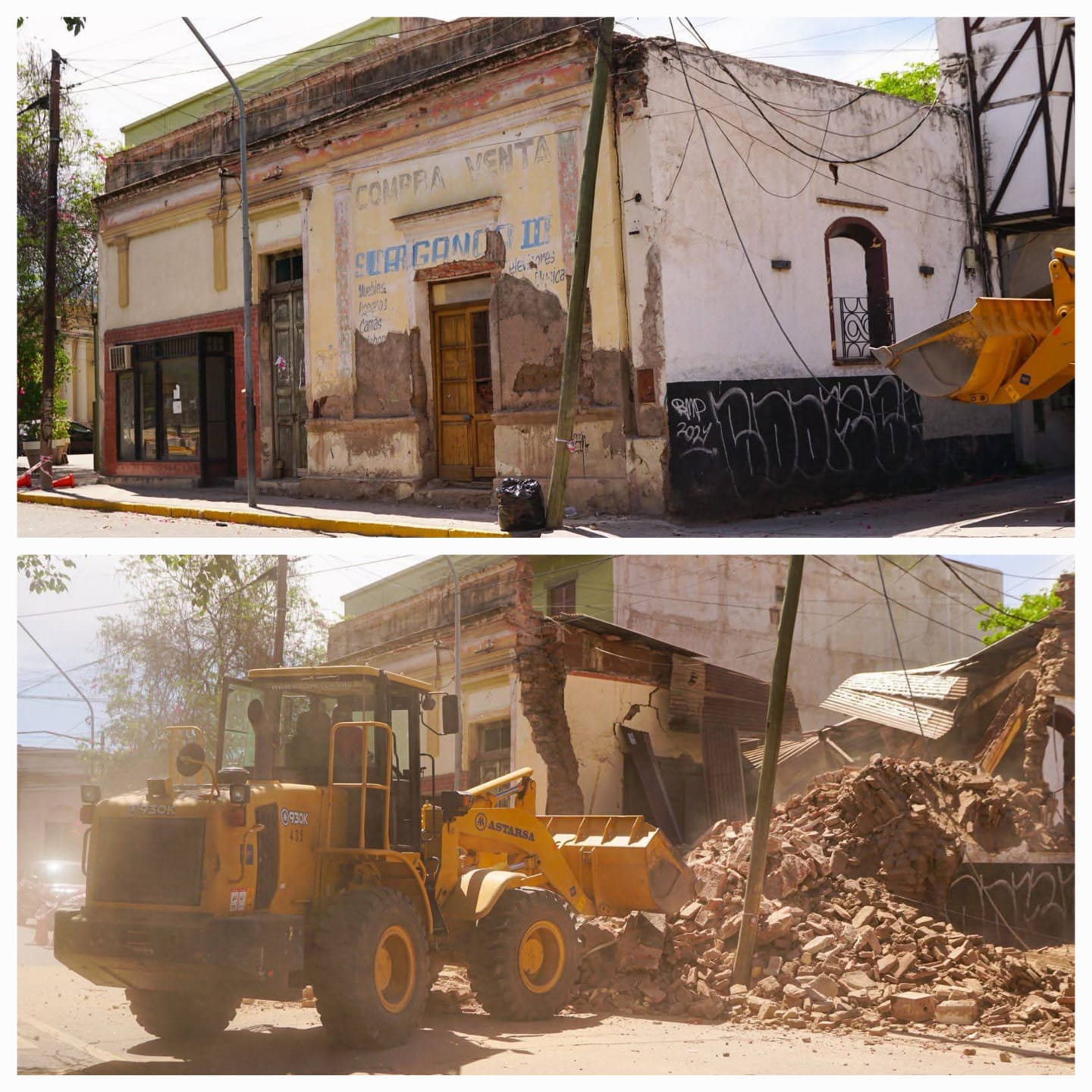 En este contexto, personal de la subsecretaría de Uso del Suelo inspeccionó una casona en la Avenida Rivadavia al 775, donde a través de un convenio se procedió a la demolición.