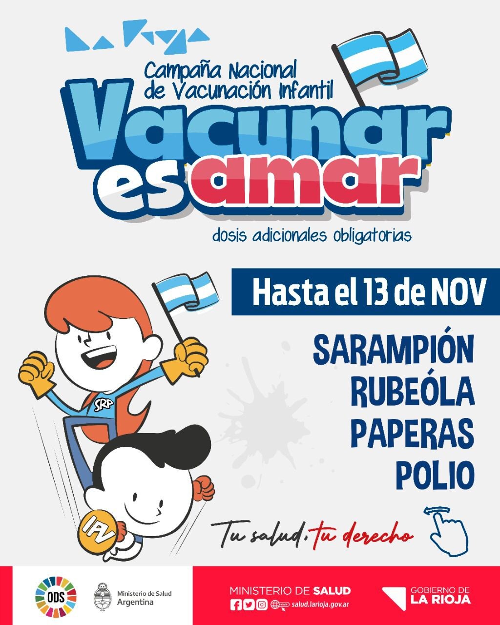 Bajo el lema “Vacunar Es Amar” comenzó el 1 de octubre la campaña nacional de vacunación contra el sarampión, rubeola, papera y la poliomielitis. “Nuestra campaña de vacunación es para niños de 13 meses a 4 años y buscamos avanzar en que puedan completar el calendario de vacunación y evitar la propagación de enfermedades”, contó la jefa Provincial de inmunizaciones, Silvia de Donatis.