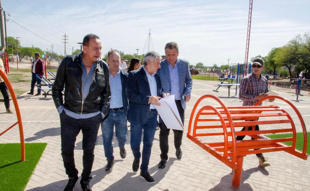 El Secretario General de la Gobernacion, Armando Molina visitó y constató los avances del Parque Norte donde pudo visualizar la etapa final de lo que será el área de servicios central como así también la colocación de juego y el encauzado del río ya con puente terminado.