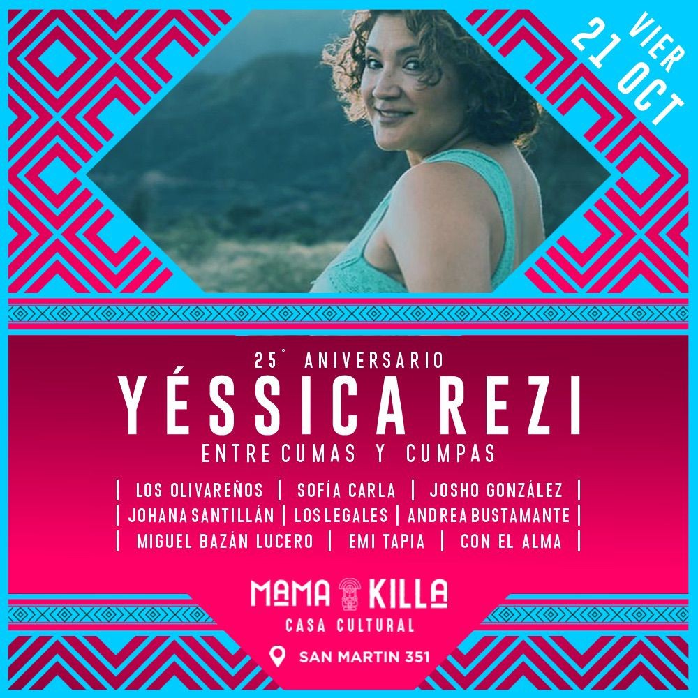 Yessica rcorrera todo su cancionero que la llevaron a grandes festivales del pais y el mundo.Sera este viernes 21 desde la hora 22 en Mama Killa Casa Cultural, San Martin 351.Entradas anticipadas $600, y en puerta el día del evento,$800. Reservas: 11 2719-0153 / 11 2316-6673 | Delivery: 3804 44-5889